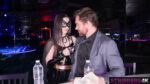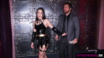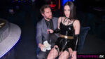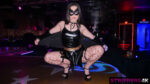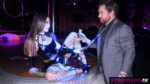 Daisy Pheonix, sexy brunette stripper, auditions for Sam Shock in black fishnets, gloves, high heels, latex dress. Starts nude posing on pol…